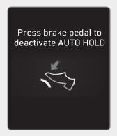 Если вы не нажали педаль тормоза, когда вы снимаете Auto Hold, нажимая кнопку Переключатель AUTO HOLD, прозвучит предупреждение и появится сообщение.