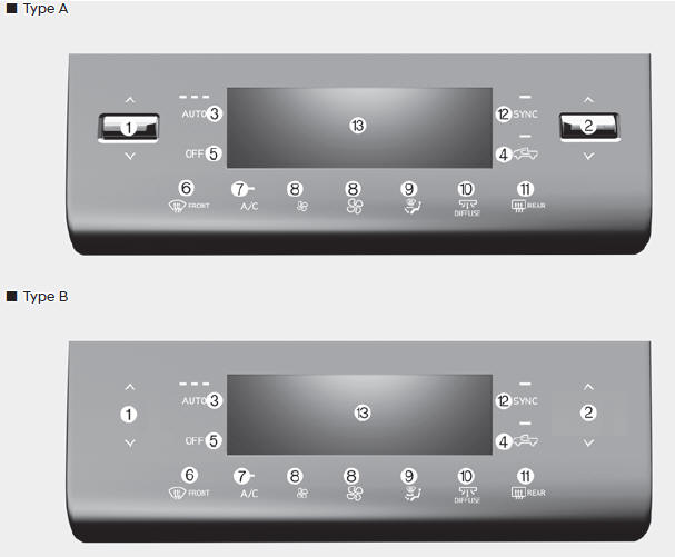 1. Кнопка контроля температуры водителя/