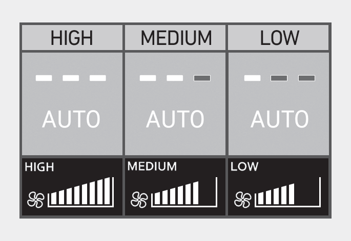Вы можете контролировать скорость вращения вентилятора в трех этапы, нажав кнопку AUTO во время автоматической работы.