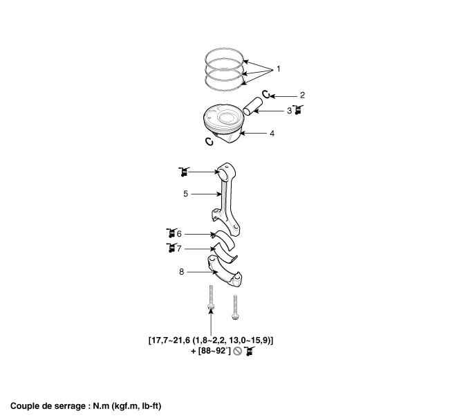 6. Верхний подшипник шатуна 7. Нижний подшипник шатуна 8. Крышка шатунного подшипника |