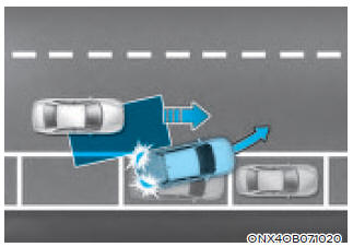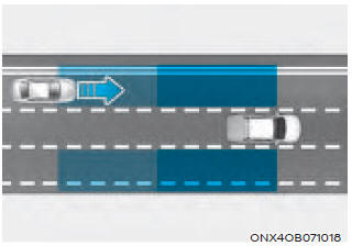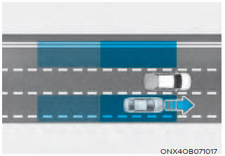 При смене полосы движения путем обнаружения полосе впереди, если столкновение в слепой зоне- Ассистент избегания оценивает наличие риск столкновения с приближающимся транспортным средством в слепой зоне, это может помочь избежать столкновение при нажатии на тормоз.