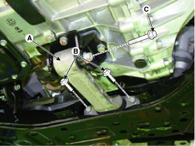 Снимите нижний рычаг с соединения с помощью SST (09568-4R100).