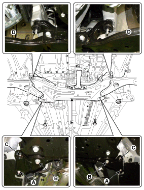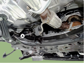 Снимите болт стопора стабилизатора поперечной устойчивости (А).