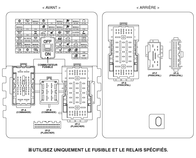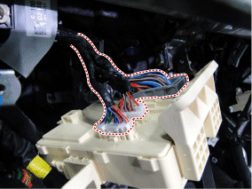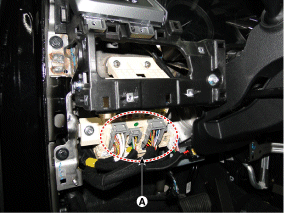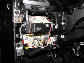 Отсоедините разъемы (А) от бокового предохранителя SJB.