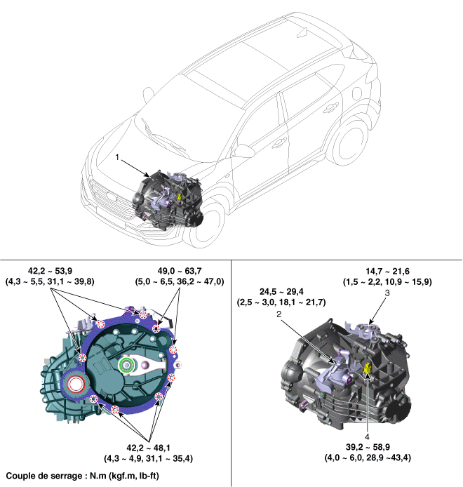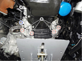 Снимите нижние болты крепления коробки передач (A-1 шт.,