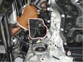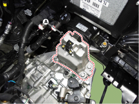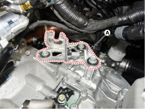 Снимите крышку монтажного кронштейна коробки передач (А).