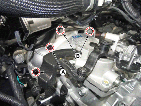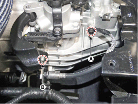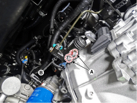 Снимите узел цилиндра выключения сцепления (B) после откручивания