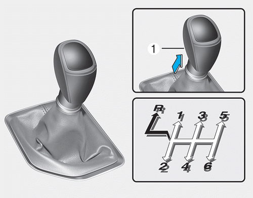 Нажмите кнопку (1), управляя рычагом переключения передач.