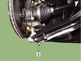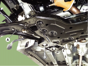 Снимите передний нижний рычаг (А) после ослабления болтов и гаек.