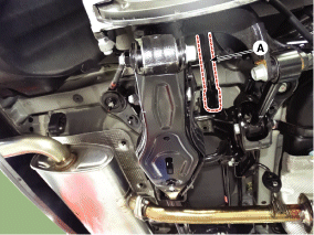 Ослабьте гайку и болт крепления заднего верхнего рычага,