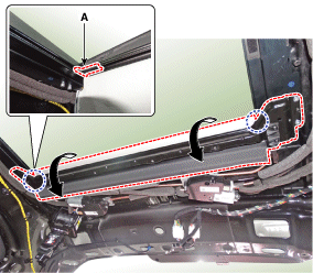 Снимите нижнюю опору солнцезащитного козырька (А), ослабив винты.