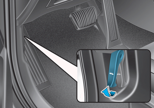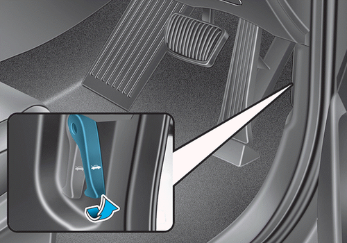 2. Потяните рычаг разблокировки, чтобы разблокировать капот. Капот открывается.