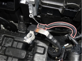 Отсоедините отрицательный (-) кабель аккумулятора после удаления болта.