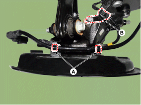 Снимите кронштейн кабеля датчика скорости вращения колеса (В). [4WD