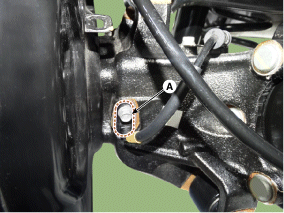 Отсоедините разъем датчика скорости заднего колеса (А).
