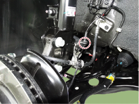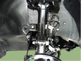 Отсоедините разъем датчика скорости переднего колеса, затем снимите