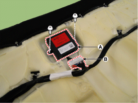 Снимите блок обогревателя переднего сиденья (А) после ослабления