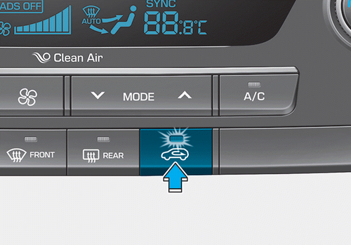 При выборе режима рециркуляции воздух в салоне проходит через нагреватель для нагрева или охлаждения в зависимости от функции выбран.