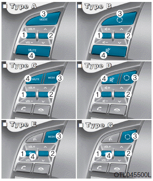 Не используйте одновременно кнопки управления аудиосистемой на рулевом колесе.