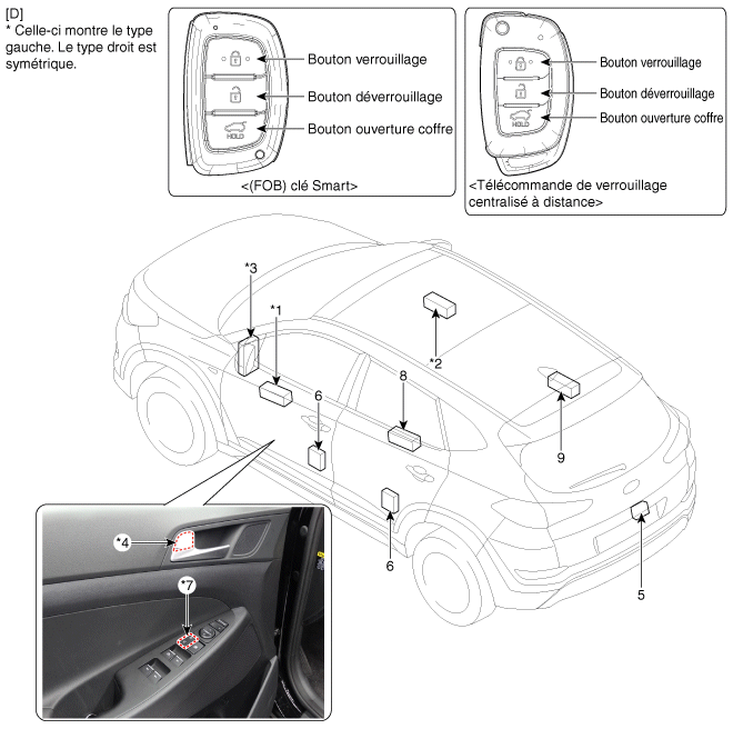 2. Переключатель стеклоподъемника пассажира 3. Умный клеммный блок (SJB) 4. Кнопка блокировки двери 5. Привод задней двери |
