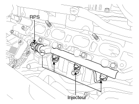 2. Датчик абсолютного давления в коллекторе (MAPS) 3. Датчик температуры впускного воздуха (IATS) 4. Датчик температуры охлаждающей жидкости двигателя (ECTS) 5. Датчик положения дроссельной заслонки (TPS) [в модуле ETC] 6. Датчик положения коленчатого вала (CKPS) 7. Датчик положения распределительного вала (CMPS) [ряд 1/впуск] 8. Датчик положения распределительного вала (CMPS) [ряд 1/выхлоп] 9. Датчик детонации (КС) 10. Датчик кислорода с подогревом (HO2S) [ряд 1 / датчик 1] 11. Датчик кислорода с подогревом (HO2S) [ряд 1 / датчик 2] 12. Датчик давления в рампе (RPS) 13. Датчик положения дроссельной заслонки (ДДП) 14. Датчик давления топлива (FPS) |