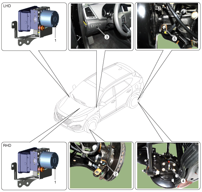 2. Датчик скорости переднего колеса 3. Выключатель ESC |
