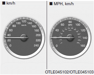 Спидометр показывает скорость автомобиля; откалиброван в милях в час (MPH) и/или километров в час (km/h).