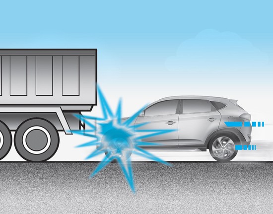 Непосредственно перед столкновением водители, как правило, резко тормозят. Этот тип торможения опускает переднюю часть автомобиля, которая может поместиться под другое транспортное средство с большим дорожным просветом. Подушки безопасности могут не разворачиваться в этом случае, потому что сила торможения, обнаруженная датчиками может быть значительно уменьшено с помощью этого типа встраивания.