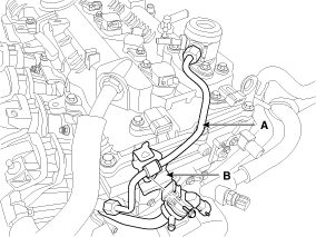 Отсоедините топливный шланг (A) и шланг PCSV (электромагнитный клапан) (B).