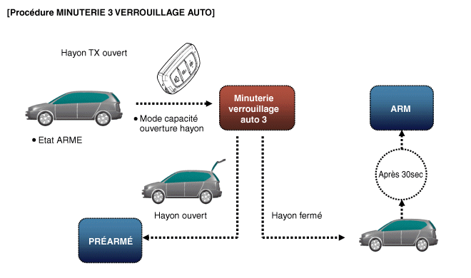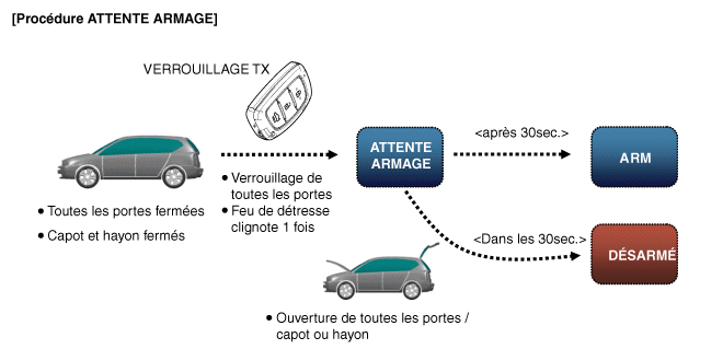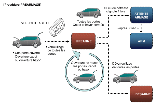 2-3. При обнаружении вторжения в режиме PREARM автомобиль переходит в режим
