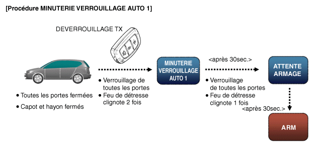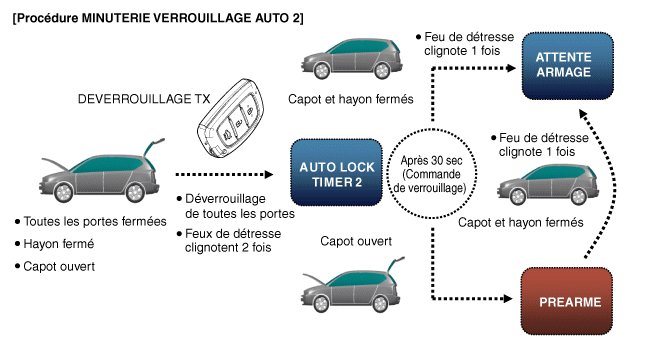 окончание таймера AUTO LOCK 2 и один раз все двери