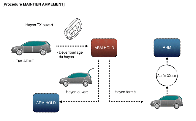 смарт-ключ) в режиме ARM автомобиль переходит в режим HOLD