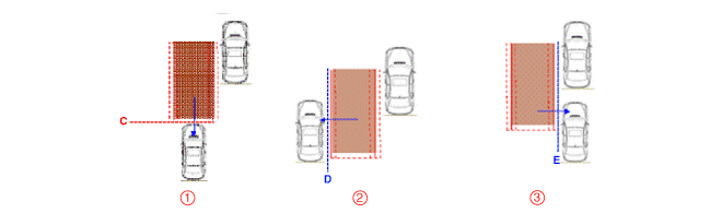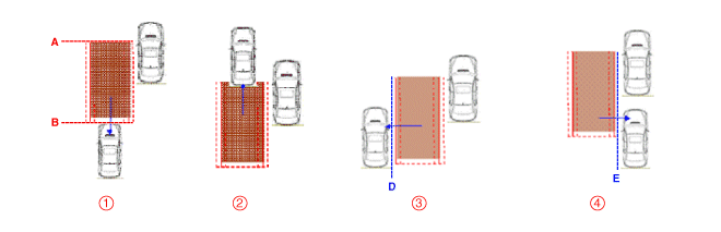 ② Кузов целевого транспортного средства перемещается за линию B.