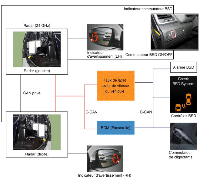 BSD и активирует сигнальную лампу BSD для водителя.