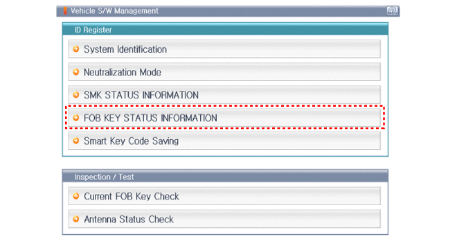 После того, как ВСЕ ВКЛЮЧЕНО, выберите «ИНФО СОСТОЯНИЯ КЛЮЧА брелока».