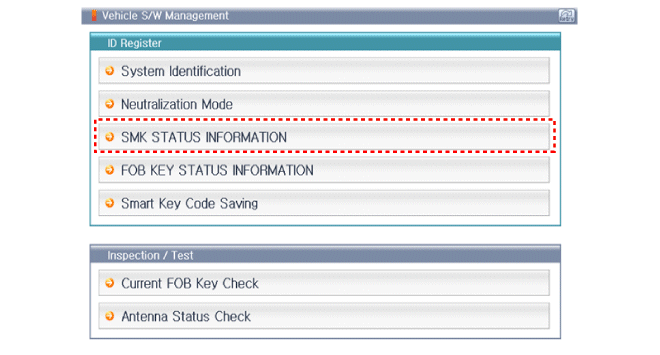 После ALL ON выберите "SMK STATUS INFO".