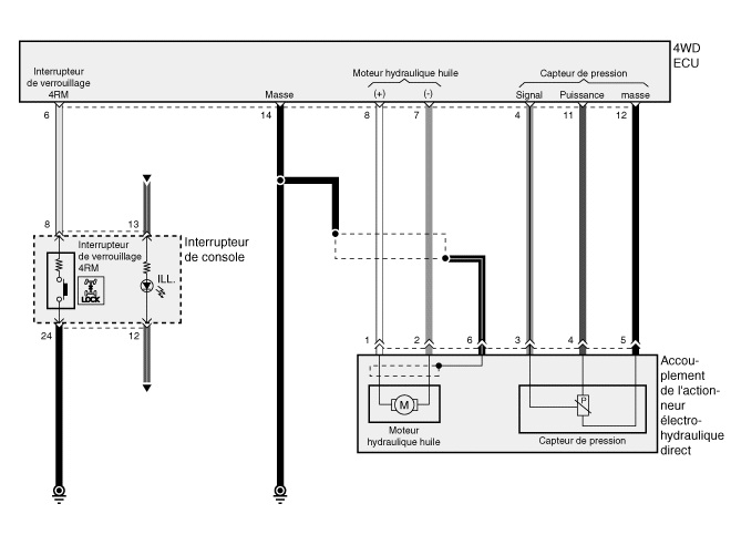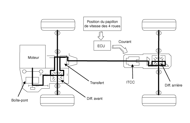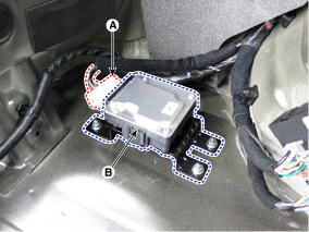Ослабьте гайки и снимите ЭБУ 4WD (B).