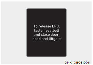 Если электронный стояночный тормоз (EPB) не не отпустить нормально, НЕ УПРАВЛЯЙТЕ ТРАНСПОРТНОЕ СРЕДСТВО. Проведите осмотр вашего автомобиля в у официального дилера HYUNDAI.