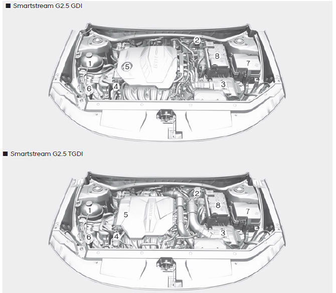 5. Крышка заливной горловины моторного масла (заливная горловина 2.5 T-GDI).