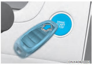 Если батарея смарт-ключа разряжена или смарт-ключ работает неправильно, вы можно завести автомобиль, нажав кнопку Кнопка запуска/остановки двигателя с умным в направлении, указанном на картинке выше.