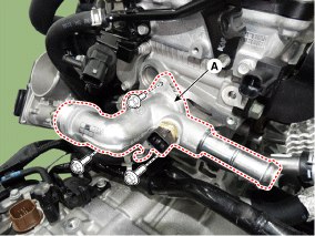 Отсоедините перепускной шланг (А) и шланг охлаждающей жидкости от
