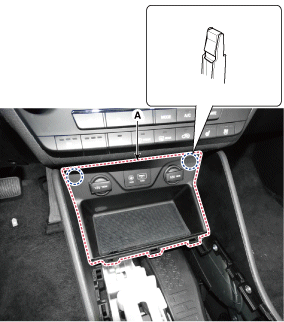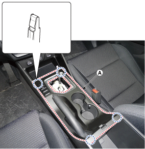 Снимите стойку напольной консоли (A) с помощью отвертки или