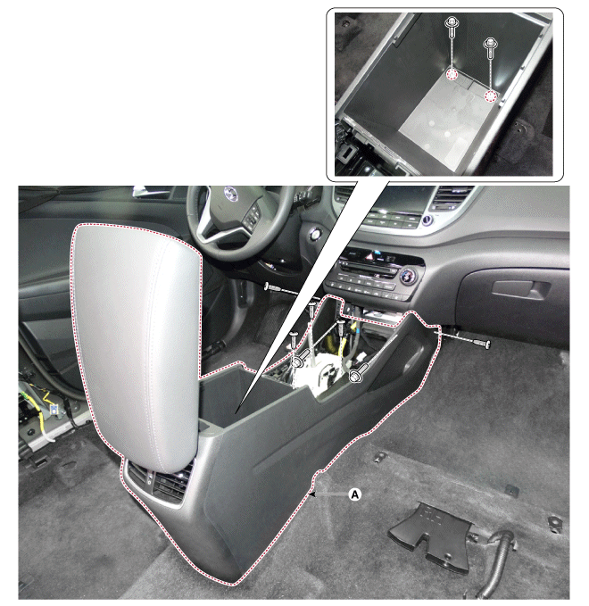 Снимите верхнюю крышку напольной консоли (А) с помощью