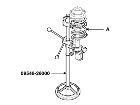 Сожмите винтовую пружину (А) с помощью специального инструмента (09546-26000).