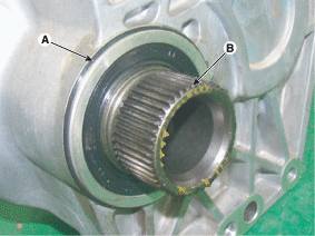 Снимите трансмиссионный вал (А).