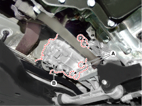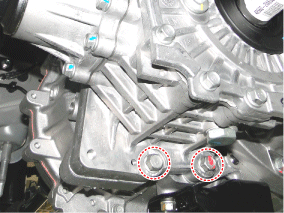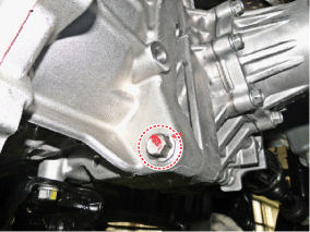 Ослабьте нижний болт крепления раздаточной коробки. (сторона трансмиссии