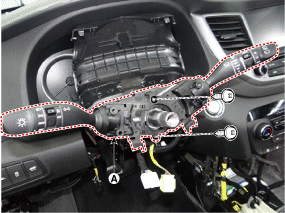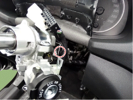 Снимите зажим, прикрепленный к проводке рулевой колонки.