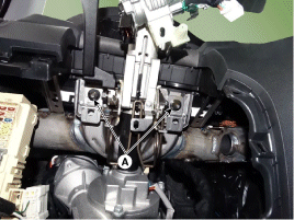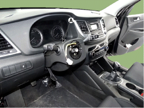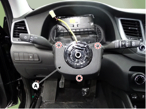 Отсоедините разъем подушки безопасности (А) и разъем звукового сигнала.