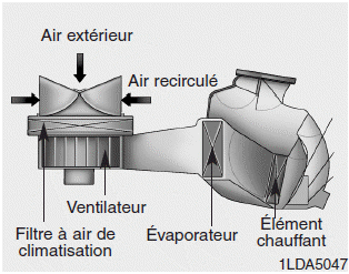 Воздушный фильтр кондиционера, установленный за перчаточным ящиком, очищает пыль и другие загрязняющие вещества, попадающие в автомобиль через систему отопление и кондиционирование. Если пыль или другие загрязнения накапливаются в фильтре поток воздуха из вентиляционных отверстий может уменьшиться, что приведет к увеличение влажности на лобовом стекле, даже при положении Выбирается наружный (свежий) воздух.