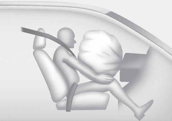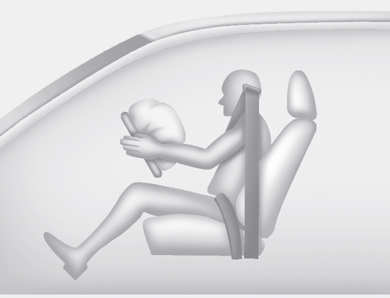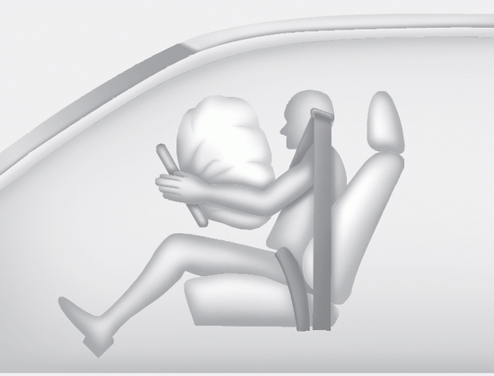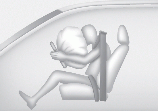 Полностью развернутая подушка безопасности в сочетании с правильно установленным ремнем безопасности изгибается, замедляет проекцию водителя или переднего пассажира вперед, тем самым снижая риск травм головы и грудной клетки.